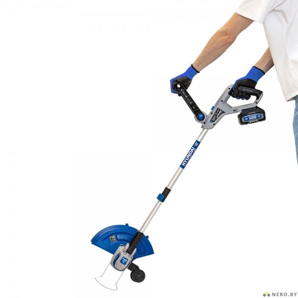 • Колесики на триммерной головке позволяют выполнять ровную кромку газона вдоль бордюров, плитки и заборов, обеспечивая стабильную глубину среза при перемещении по опорной поверхности.