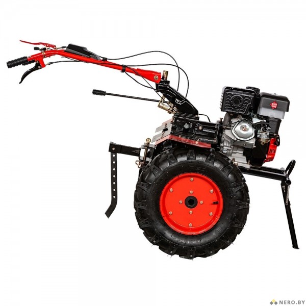 Тип двигателя: одноцилиндровый 4−х тактный OHV с воздушным охлаждением Двигатель: 192F Мощность: 18 л.с. Трансмиссия: обр.муфта сцепления/КПП/BIG редуктор Количество передач: 3F / 1R Регулировка руля (высота/горизонталь): ±25° / 360° Колесная формула: 7.00−12 (в комплекте) Выходной вал: шестигранный S32 мм Почвенная фреза: 4+1 секции по 4 ножа + диск Прицепной узел: 3 отверстия (русская сцепка)