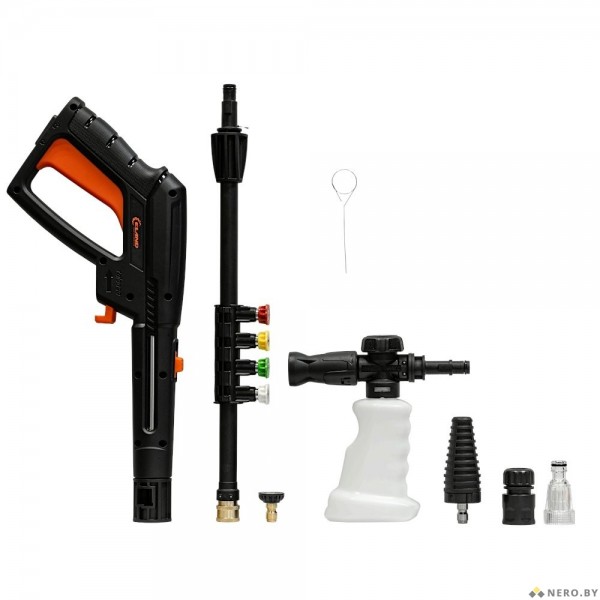 • Богатая комплектация включает фильтр для воды, комплект насадок, пеногенератор и переходники, что позволяет приступить к работе сразу после покупки.
