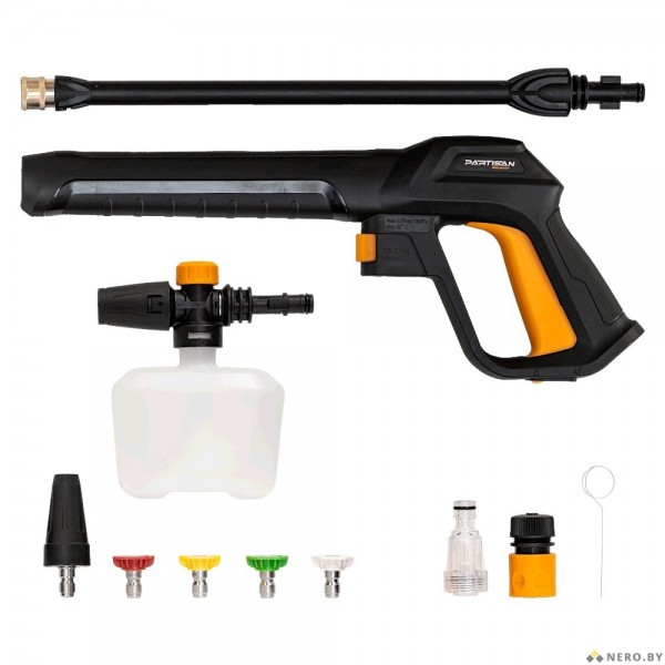 • Богатая комплектация включает фильтр для воды, комплект насадок, пеногенератор и переходники, что позволяет приступить к работе сразу после покупки.