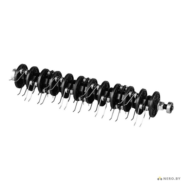• Вертикуляционный ролик с 10 двойными ножами из нержавеющей стали эффективно прорезает дерн, удаляет войлок и стимулирует рост новой травы.
