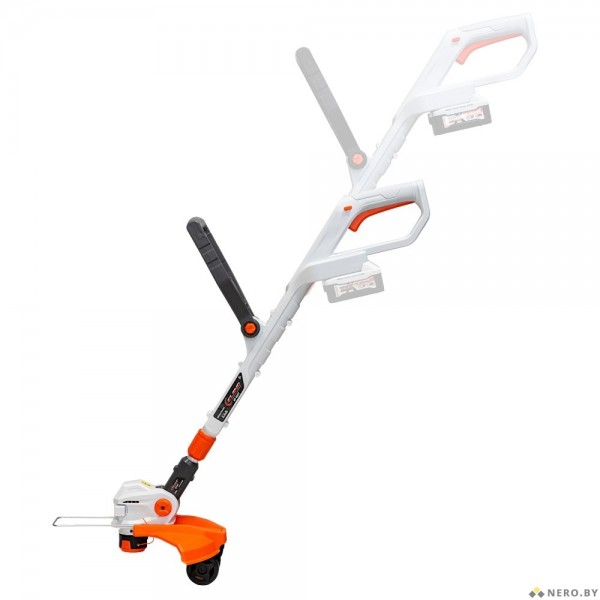 • Поворотная режущая головка на 90° позволяет быстро перейти от кошения к подрезке кромок и удобно обрабатывать участки вдоль дорожек, бордюров и ограждений.